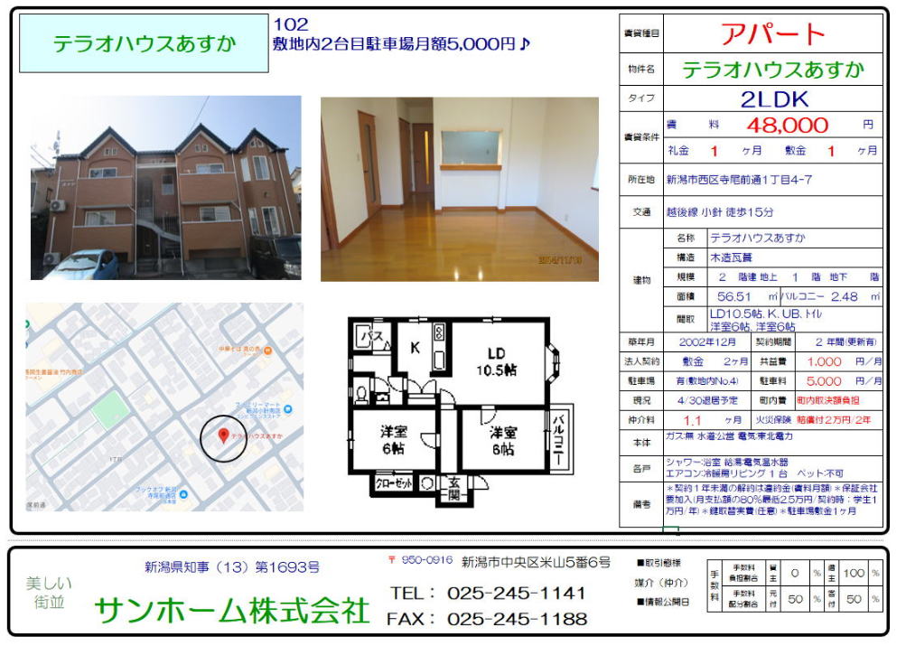 メテラオハウスあすか102(西区寺尾前通1-4-7) 2LDK 48,000円