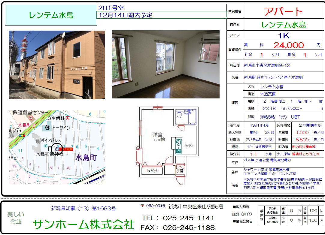 レンテム水島201(中央区水島町9-12) 1K 24,000円